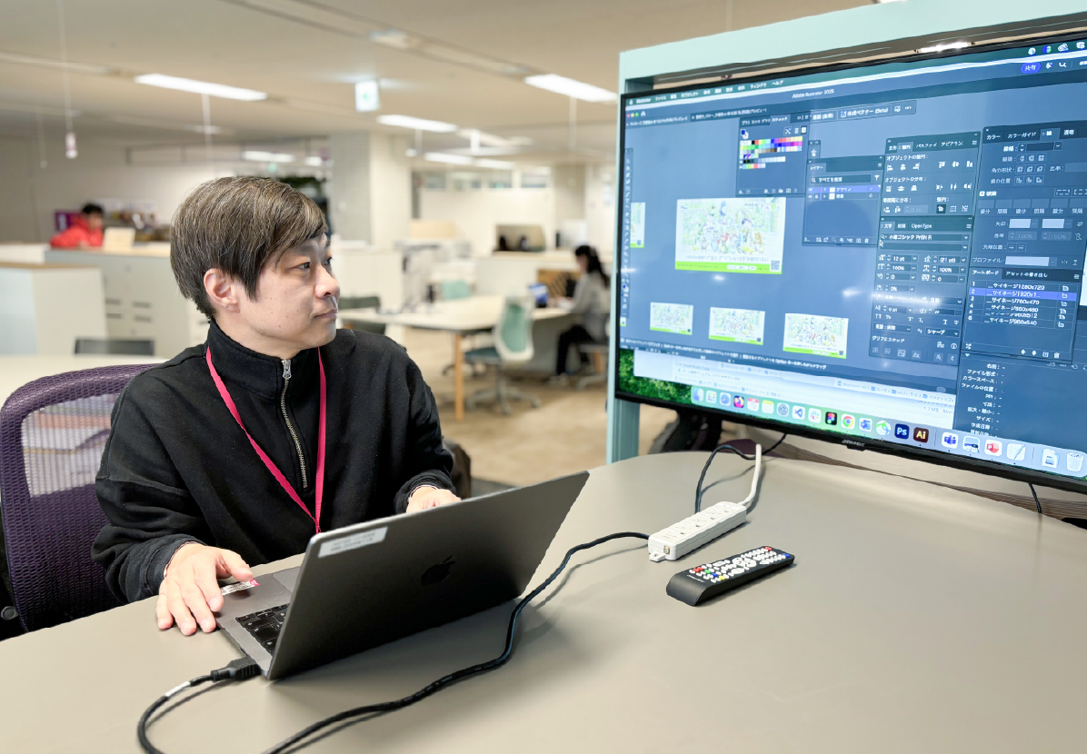 また、マーケティング部門と連携し、キャンペーンに関する販促デザインやiAEONブランドサイト/自社のコーポレートサイトの管理・更新も行っています。